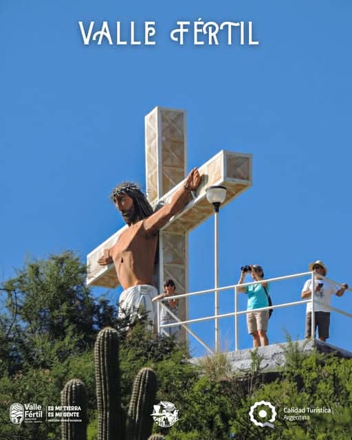 No podés decir que viniste a Valle Fértil si no subiste al Cristo de la Hermandad. No solo es un símbolo de fe y encuentro, sino el mirador perfecto para sentir la brisa, rodearse de cardones y ver el pueblo desde lo alto es una experiencia que te conecta con la paz y magia de nuestro departamento. 🌵⛰️