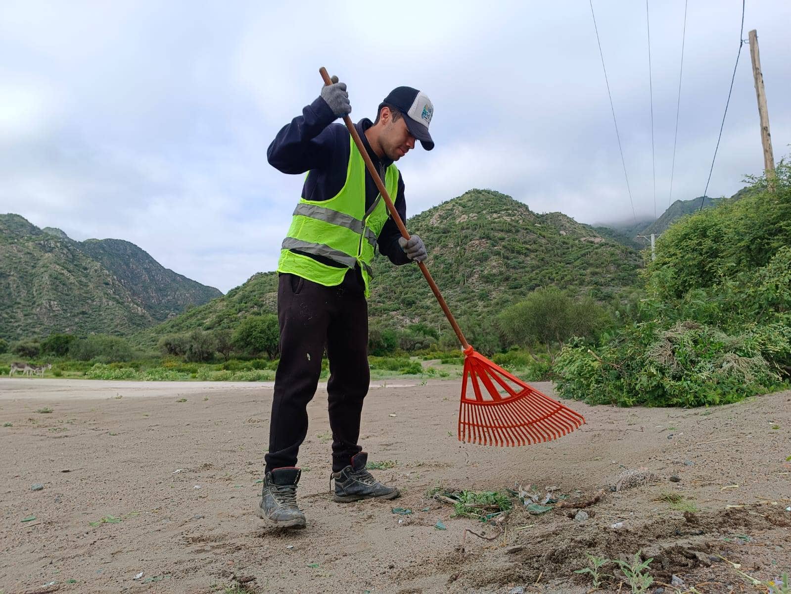El personal de Obras y Servicios de nuestro municipio, se encuentra realizando un operativo de limpieza y mantenimiento en la primer pasada del río, seguidamente lo harán en las inmediaciones del paseo de los pescadores, Av. Ischigualasto y distintas calles y espacios públicos.